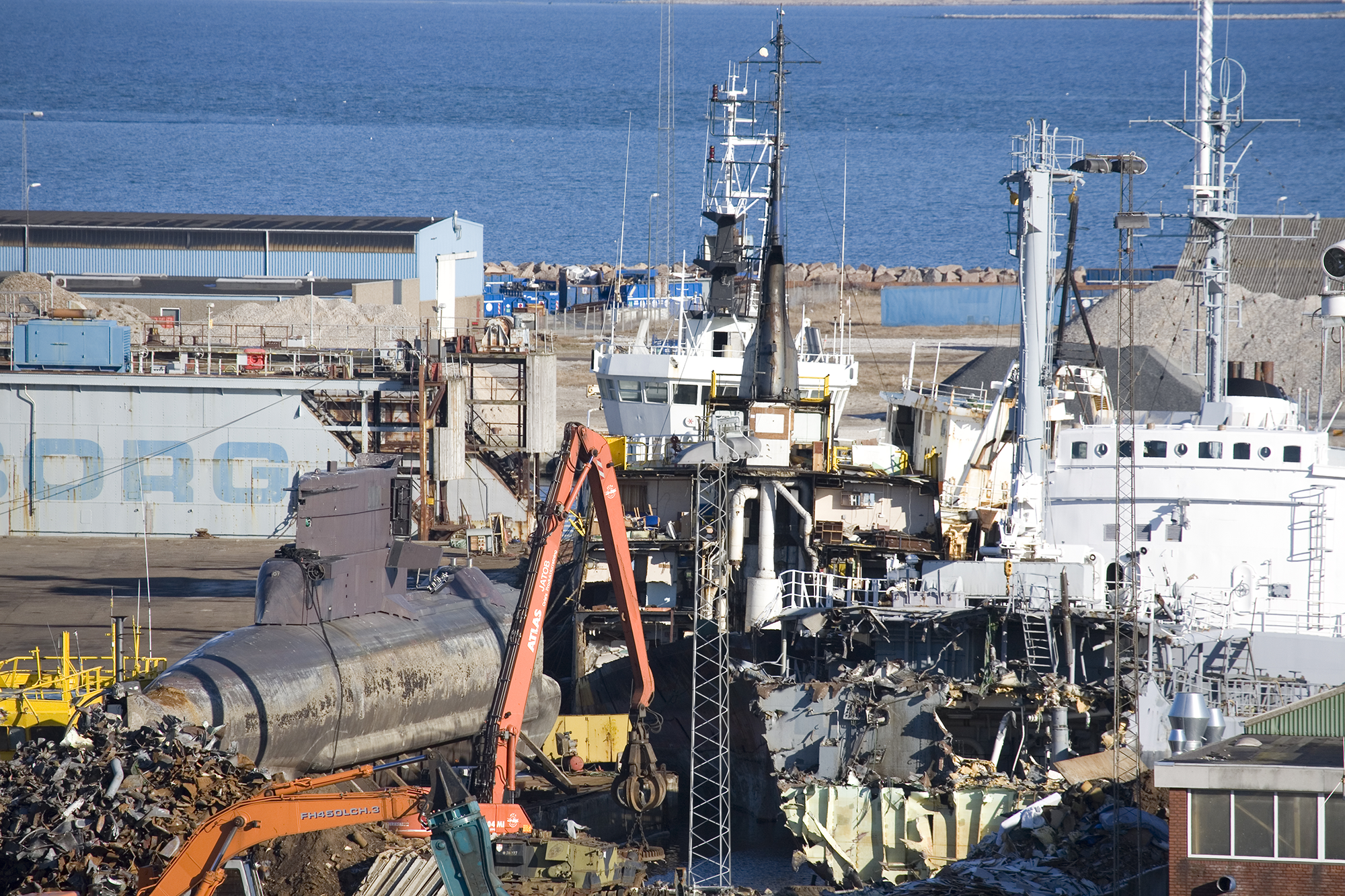 2009, February 14: Another scene with recycling activities showing an unidentified submarine being dismantled.