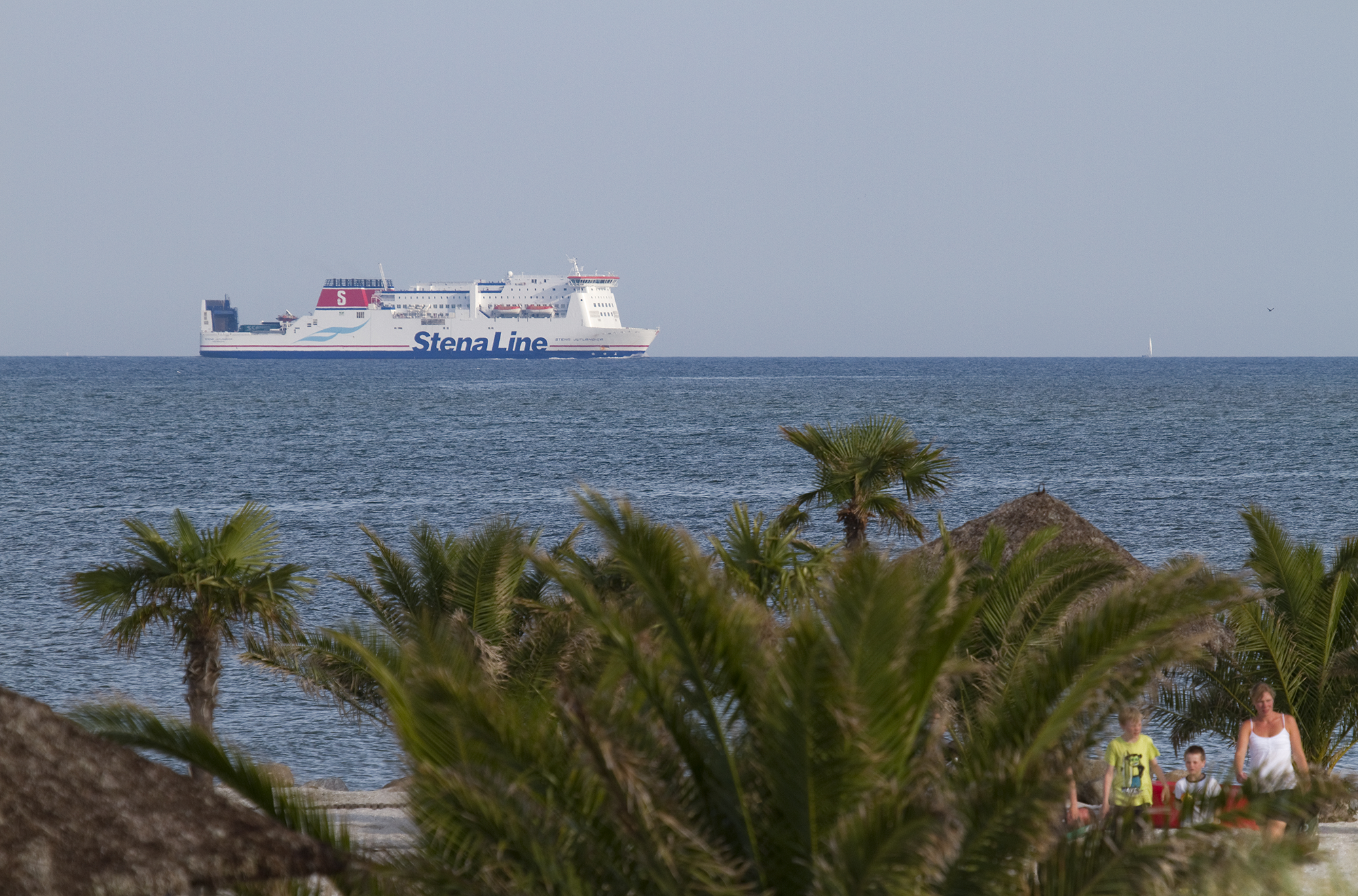 2011, July 30: Frederikshavn has it own Palm Beach, but the palm trees stay in a greenhouse during the winter. Here STENA JUTLANDICA approaches from Gothenburg.
