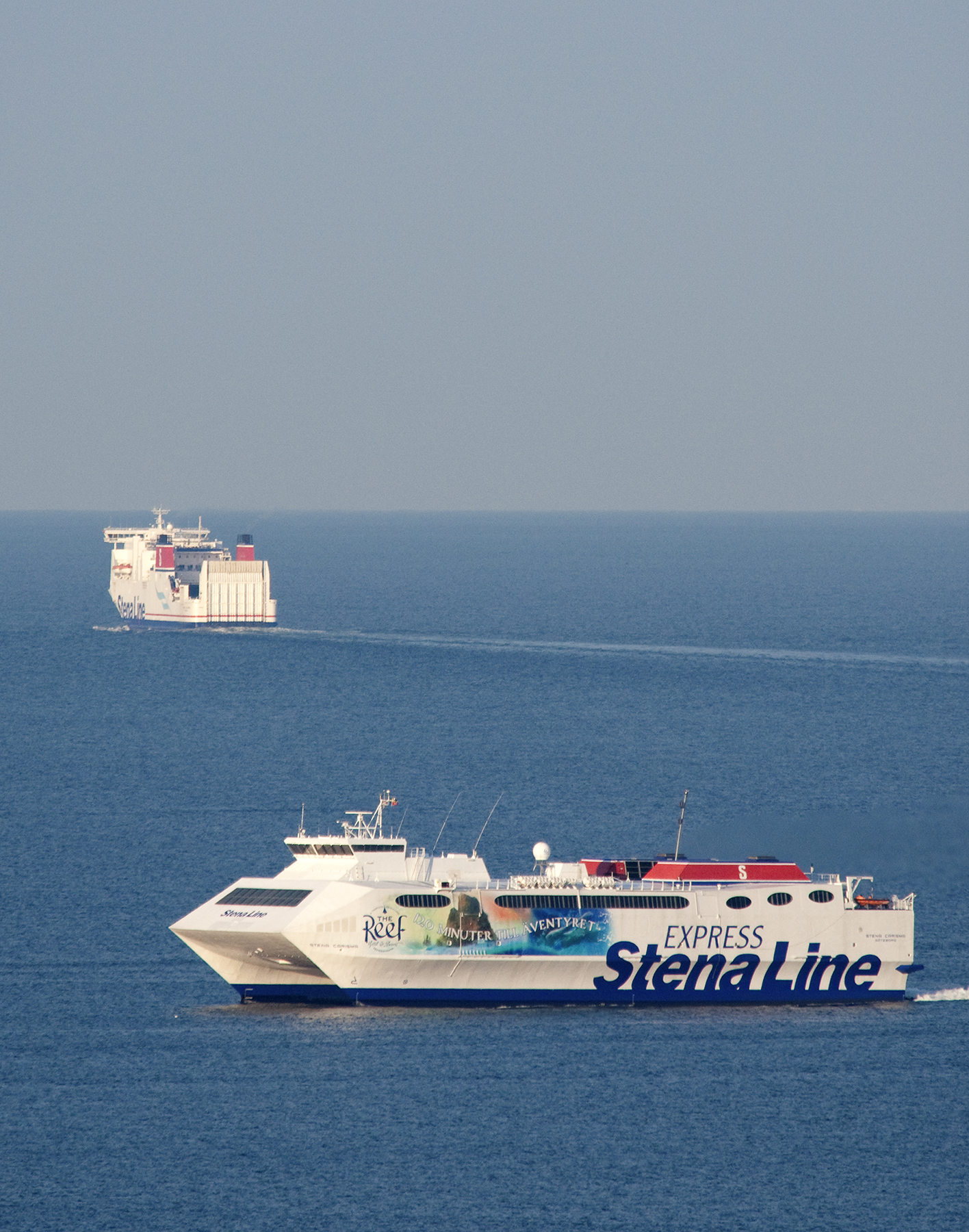 In the evening that fine summer day the high-speed ferry STENA CARISMA arrives from Gothenburg while STENA JUTLANDICA is of again. This time photographed from Pikkerbakken.