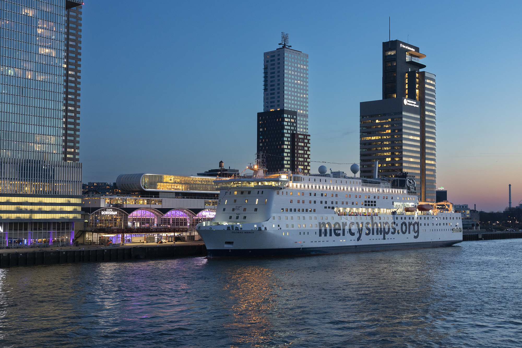 The GLOBAL MERCY joins the organization’s current hospital ship, the AFRICA MERCY. With this new ship, Mercy Ships desire is to double its impact, both with life-changing surgeries, as well as through education and training of local healthcare providers in Africa. When both ships are in full service, Mercy Ships hopes to perform more than 5,000 surgeries, more than 28,000 dental treatments annually, and train more than 2,800 medical professionals a year. The GLOBAL MERCY is 174 meters long and 28.6 meters wide. It has six operating rooms, 200 beds, a laboratory, general outpatient clinics and eye and dental clinics. The total area of the hospital department is 7,000 square meters. The ship can accommodate 950 people when docked, including up to 641 crew members, who are made up of volunteers from all over the world. In addition to the hospital, the ship contains the latest training facilities. For more than 30 years Mercy Ships has contributed to the sustainable development of local medical care throughout West and Central Africa.