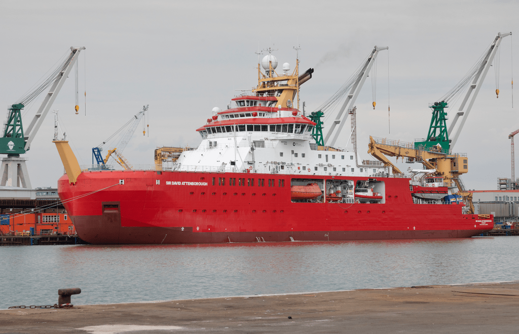 SIR DAVID ATTENBOROUGH was delivered from the British shipyard Cammell Laird in 2021. In addition to the crew, the ship has an accommodation capacity of 60 scientists who would be able to work on board for up to 60 days without the ship receiving stores from land.