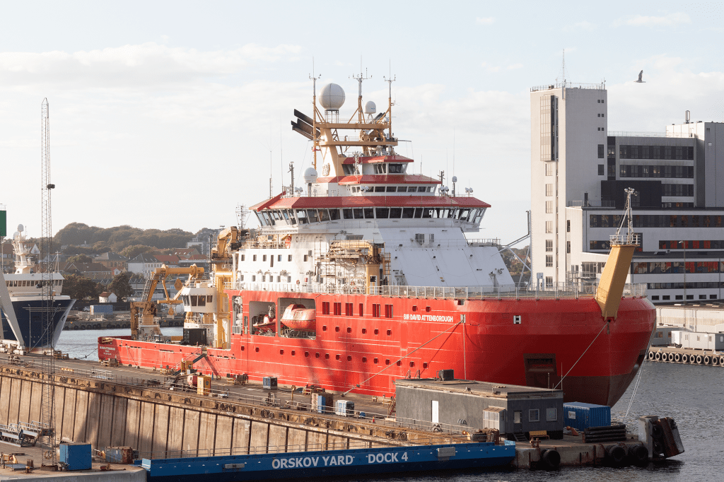 This is also happening right now, with England’s largest and most advanced polar research vessel ever, SIR DAVID ATTENBOROUGH, returning to the shipyard after its first Antarctic voyage season. The newly built ship was also visiting Orskov Yard last summer for the final preparation before its first voyage in the Antarctic summer from December to March.