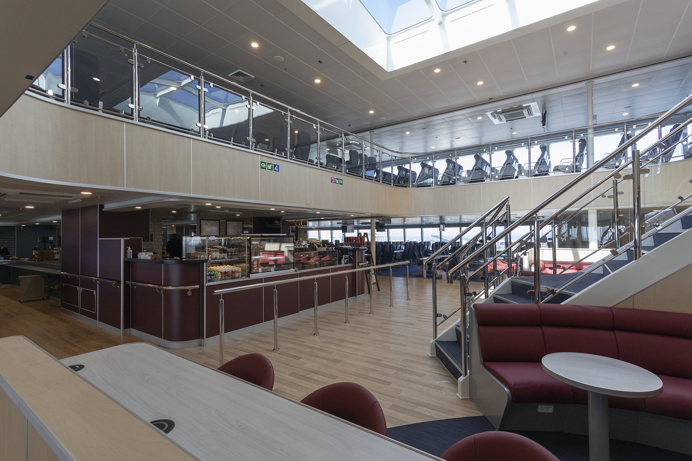 Therefore, the counterpart to Business Blue Class on EXPRESS 5 is a dedicated commuter lounge on the port side of the front zone of the ferry. The other part of the main passenger deck at the front is therefore, opposite on Kattegat, open to everyone, who can thus enjoy the panoramic view ahead, regardless of the type of ticket.