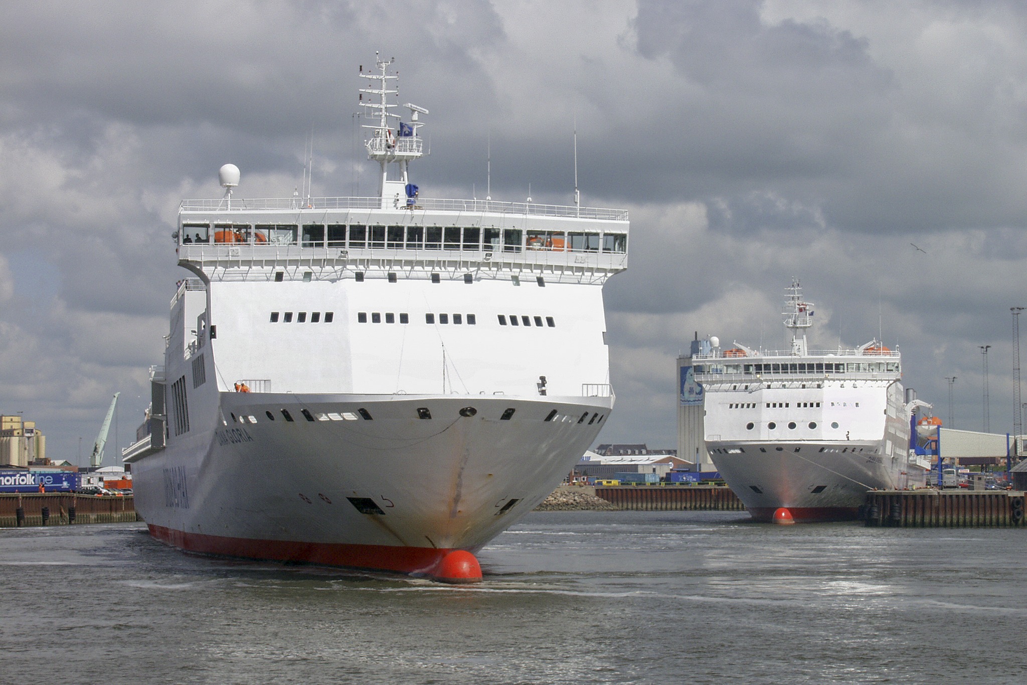 16 June 2003 in Esbjerg. DFDS’ ro/pax ferry DANA GLORIA arrive from its last trip from Harwich, while the replacement DANA SIRENA lies in the background and is being set up for deployment the following day. DFDS has a fantastic history as a passenger shipping company. That is why the shipping company also previously preferred to refer to its ferries as passenger ships.